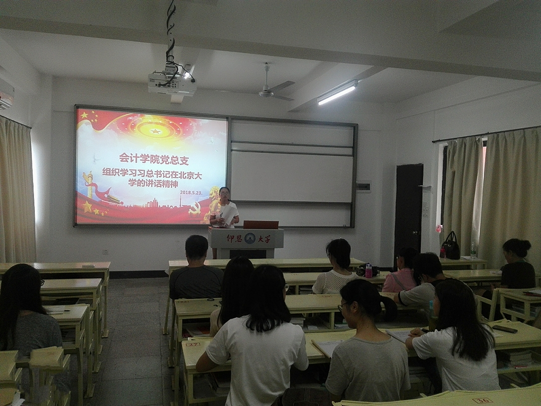 2018年5月23日下午2:30kaiyun开云官方党总支组织学院党员同志于吉龙楼304学习习总书记在北京大学师生座谈会上的重要讲话精神,kaiyun开云官方教工党支部和会计一支全体党员同志参加本次的学习会。