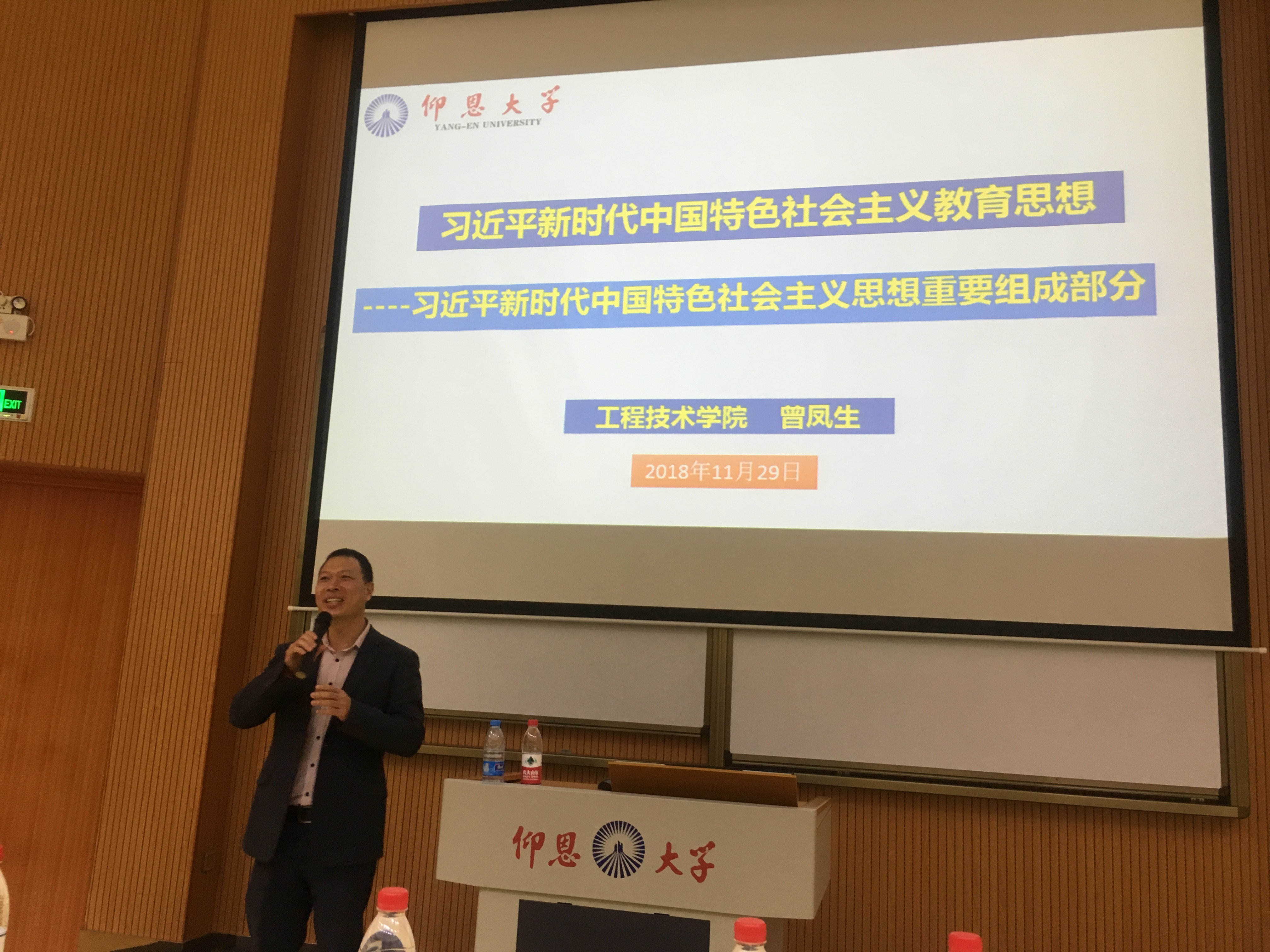 此次学习邀请到了kaiyun开云官方理论宣讲团成员、工程技术学院党总支书记兼副院长曾凤生为大家做宣讲报告,他围绕习近平新时代中国特色社会主义教育思想,从习近平新时代中国特色社会主义教育思想解读切入主题,以清晰透彻的逻辑性思维从“大目标——中华民族伟大复兴的中国梦”、“高等教育目标——建设高等教育强国”、“内在灵魂——扎实办好中国特色社会主义大学”、“路径选择——双一流建设”、“根本动力——综合改革”、“具体要求——立德树人、社会主义核心价值观”、“根本保证——加强和改进党的建设”七个方面的内容进行了深入阐述和详细解读,宣讲内容逻辑紧密、脉络清晰,曾凤生教授生动形象地举例讲解,使得现场每位学习者都能够体会理解习近平新时代中国特色社会主义教育理念,其内容所突出的重点。关于“如何打造金课”,曾凤生教授从“金课”和“水课”的区别导入,讲解了“线下金课”、“线上金课”、“线上线下混合式金课”、“虚拟仿真金课”、“社会实践金科”的五大“金课”,结合kaiyun开云官方以“开放型、国际化”现代大学为目标的实际情况,提出大学的天职——教书育人、大学的良心——潜心教书育人,并再次强调“做好天职事,干好良心活”,共同实现高等教育强国梦。宣讲内容既有理论高度又有思想深度,有逻辑性,有针对性、有实际性,尽可能使现场的每一位学习者都能准确理解学习习近平新时代中国特色社会主义的教育思想。现场的师生也十分配合曾凤生教授给出的互动,回答了“什么是社会主义核心价值观”等问题,被他所讲的内容深深吸引,并将学习心得记录下来,受益匪浅。