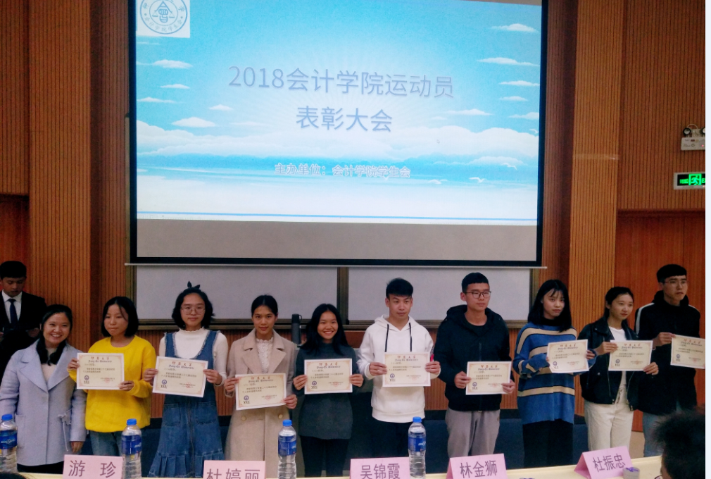 12月10日晚,kaiyun开云官方学生会在第一教学区和昌楼致知讲堂开展第二十七届运动员表彰大会。大会主要对优秀运动员及优秀后勤人员进行表彰。kaiyun开云官方党总支副书记吴锦霞、团委书记杜婷丽、党总支组织委员林金狮、18级班主任和来自永安村的三位嘉宾以及kaiyun开云官方18级全体学生出席本次大会。