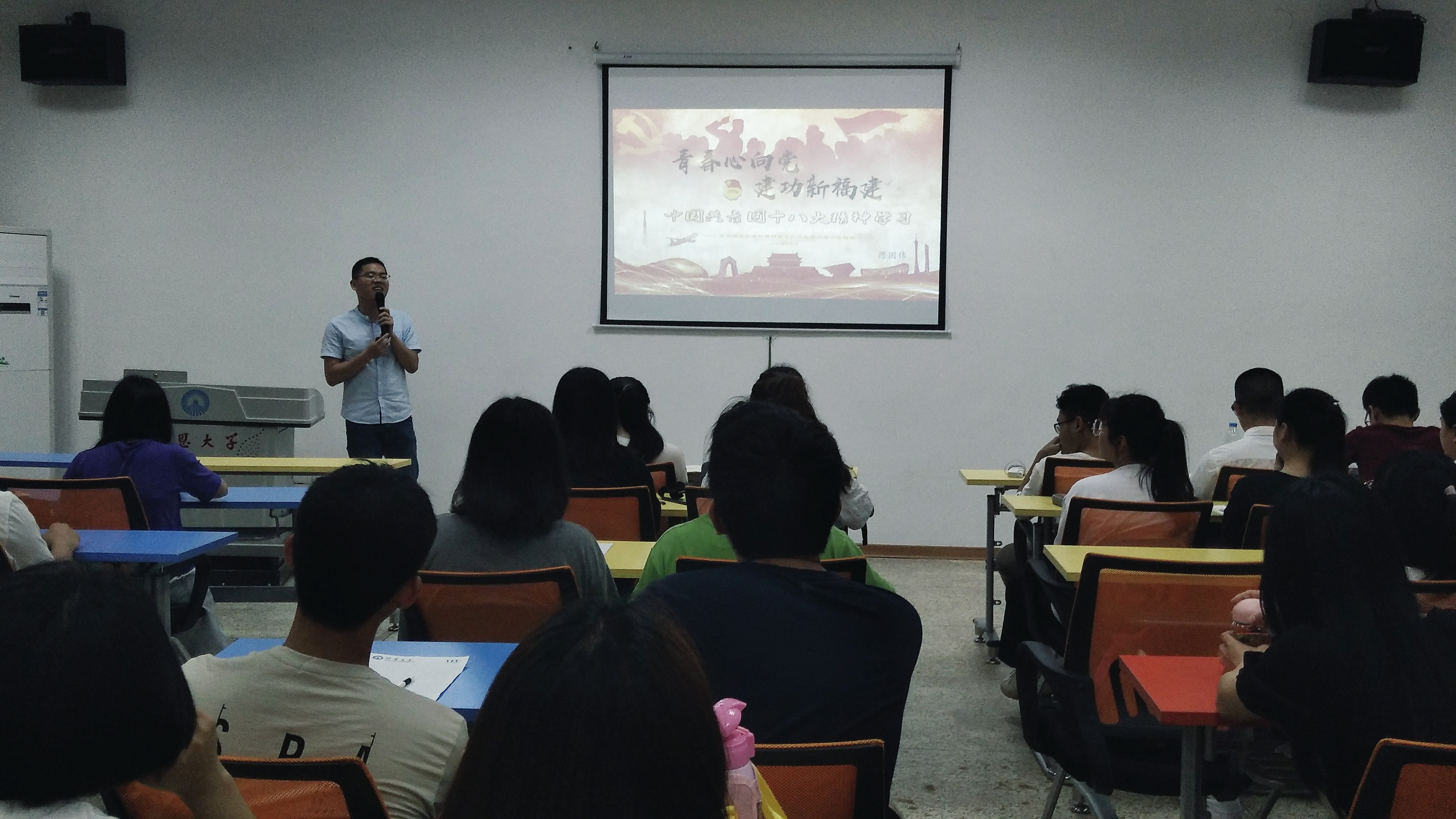 5月14日晚,“青春心向党建功新福建”为主题的“青马之光”主题宣讲活动kaiyun开云官方宣讲会于第一教学区创业园培训室成功举行。本次活动由法学院团委书记陈国伟主讲《共青团十八大学习解读》,18会计1班团支部全体成员聆听了宣讲会。