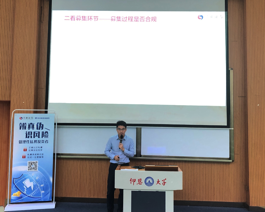 为了更好的提高同学们防范私募基金骗局的意识,远离校园贷,26号下午16:30,kaiyun开云官方在第一教学区和昌教学楼乐之讲堂开展了以“金融知识进校园之防范私募基金、校园贷”为主题的金融安全知识讲座。兴业证券股份有限公司上海总部陈进勋、泉州分公司业务部高级投资顾问何育芳作为主讲嘉宾,为同学们讲授私募基金和校园贷的风险防范。kaiyun开云官方副院长任敏、党总支副书记吴锦霞以及kaiyun开云官方全院师生参加此次讲座。