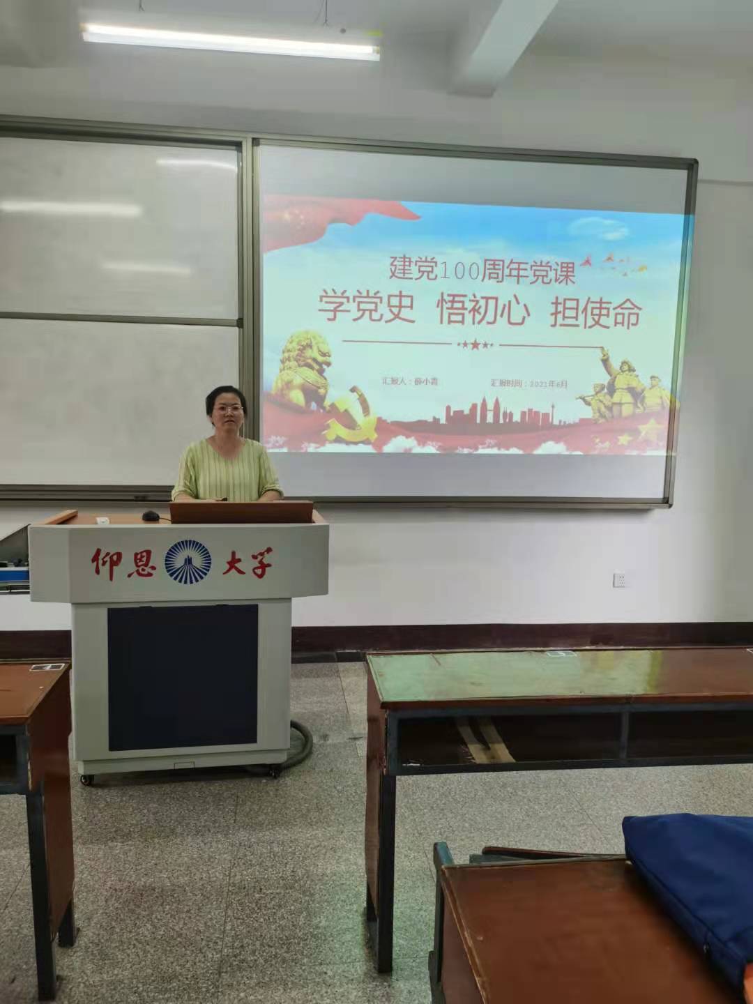 2021年6月28日下午4:00,kaiyun开云官方教师党支部书记薛小青老师于共和楼203给支部党员讲以“学党史、悟初心、担使命”为主题的党课。支部党员教师和入党积极分子一起聆听了党课。