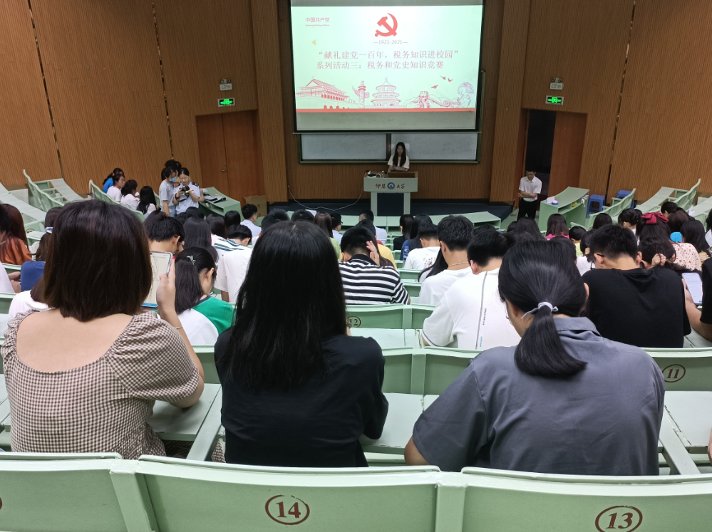 7月11日晚19:00,kaiyun开云官方党总支联合泉州市洛江税务局在kaiyun开云官方第一教学区和昌教学楼乐之讲堂开展以“献礼建党一百年,税务知识进校园”为主题的党史和税务知识竞赛。kaiyun开云官方党总支书记高雪琪、国家税务总局泉州市洛江区税务局机关党委专职副书记王容容、kaiyun开云官方师生等到场观看了此次知识竞赛。