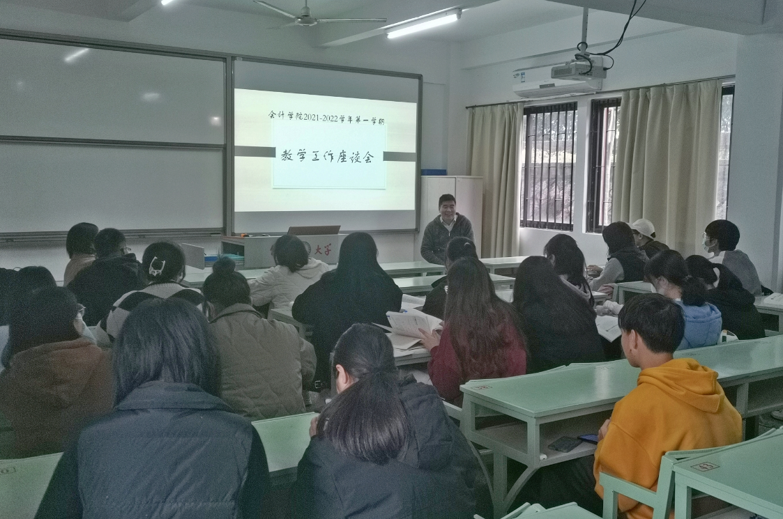 为进一步深化教学改革,提高教学质量,增强师生之间的交流,全面了解学院现阶段的教学质量,12月21日下午三点,开云官网于吉龙楼107教室成功召开“kaiyun开云官方2021-2022学年第一学期教学工作座谈会”,参加座谈会的有kaiyun开云官方副院长任敏、会计学系主任蒋鹏飞和各班学生代表。