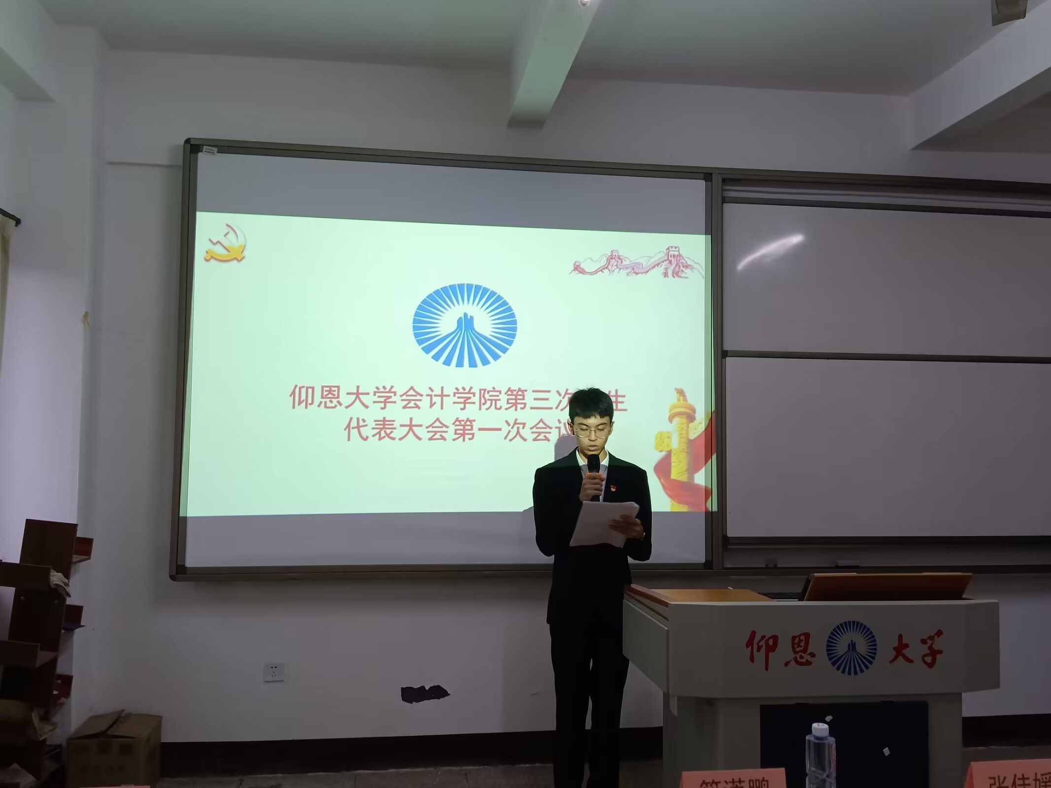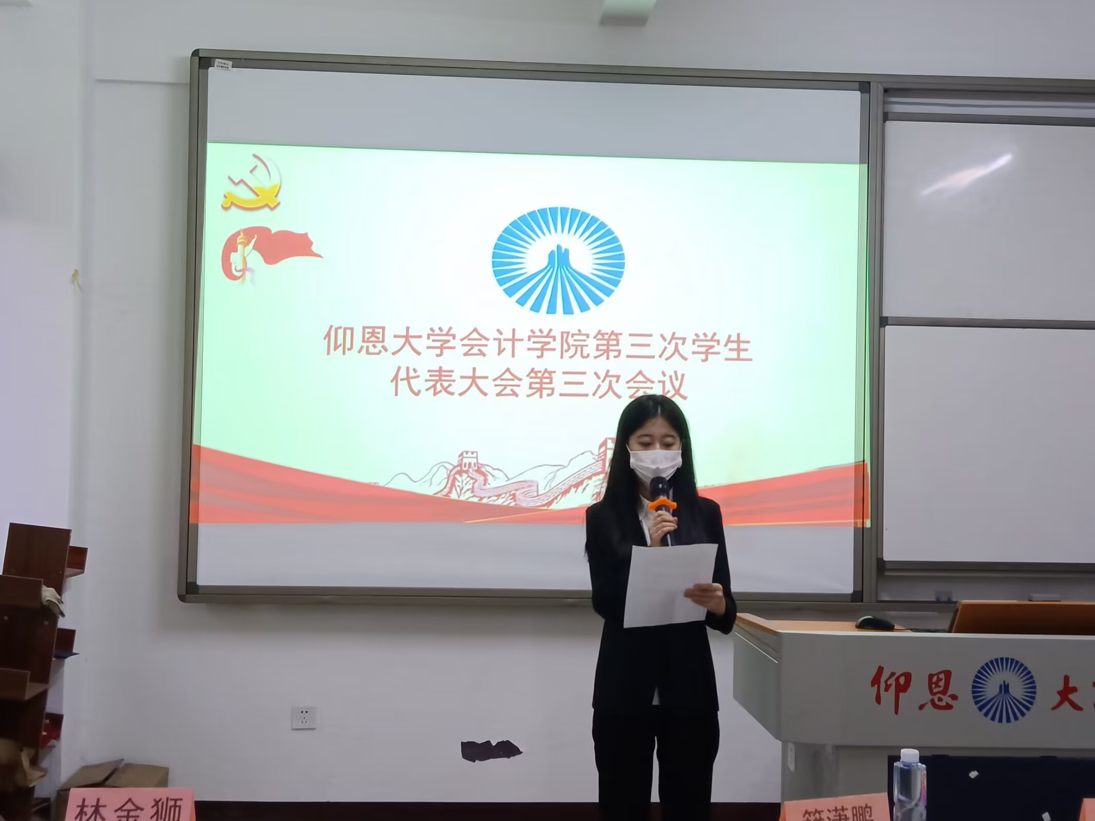 10月31日下午,kaiyun开云官方第三次学生代表大会(下面简称“学代会”)在kaiyun开云官方第一教学区吉隆楼301和302教室召开。参与此次大会的有kaiyun开云官方党总支组织委员林金狮、团委书记卢传欢、财务管理系学生支部书记籍潇鹏、会计学系学生支部书记林晓玲、学生会指导老师张佳媛以及学院48名学生代表,会议由学生会执行主席杨思琦主持。