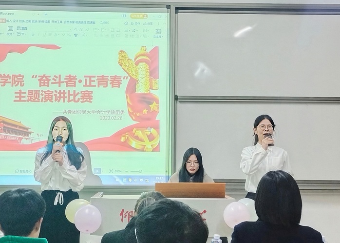 为深入学习宣传贯彻党的二十大精神,大力弘扬吃苦耐劳、自力更生、艰苦奋斗的精神,kaiyun开云官方团委于226日晚在吉龙楼302举办 奋斗者正青春主题演讲比赛。kaiyun开云官方团委书记卢传欢、会计学系党支部书记林晓玲、院团委学生副书记团应邀出席本次比赛。