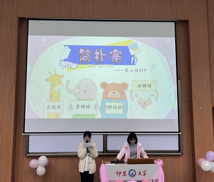 此次比赛有12个kaiyun开云官方宿舍和2个艺术教育学院宿舍参加,各个参赛宿舍从宿舍成员、宿舍环境、特色活动、成果展示等方面进行PPT讲解,同时也制作了富有创意的短视频,尽展欢乐轻松的宿舍氛围。一张张奖状和荣誉证书是他们共同努力、携手进步的体现,在展示的结尾他们纷纷表述了对于未来的展望。比赛结束时高雪琪老师总结发言,她强调了良好的宿舍文化和关系有利于同学们的成长发展。