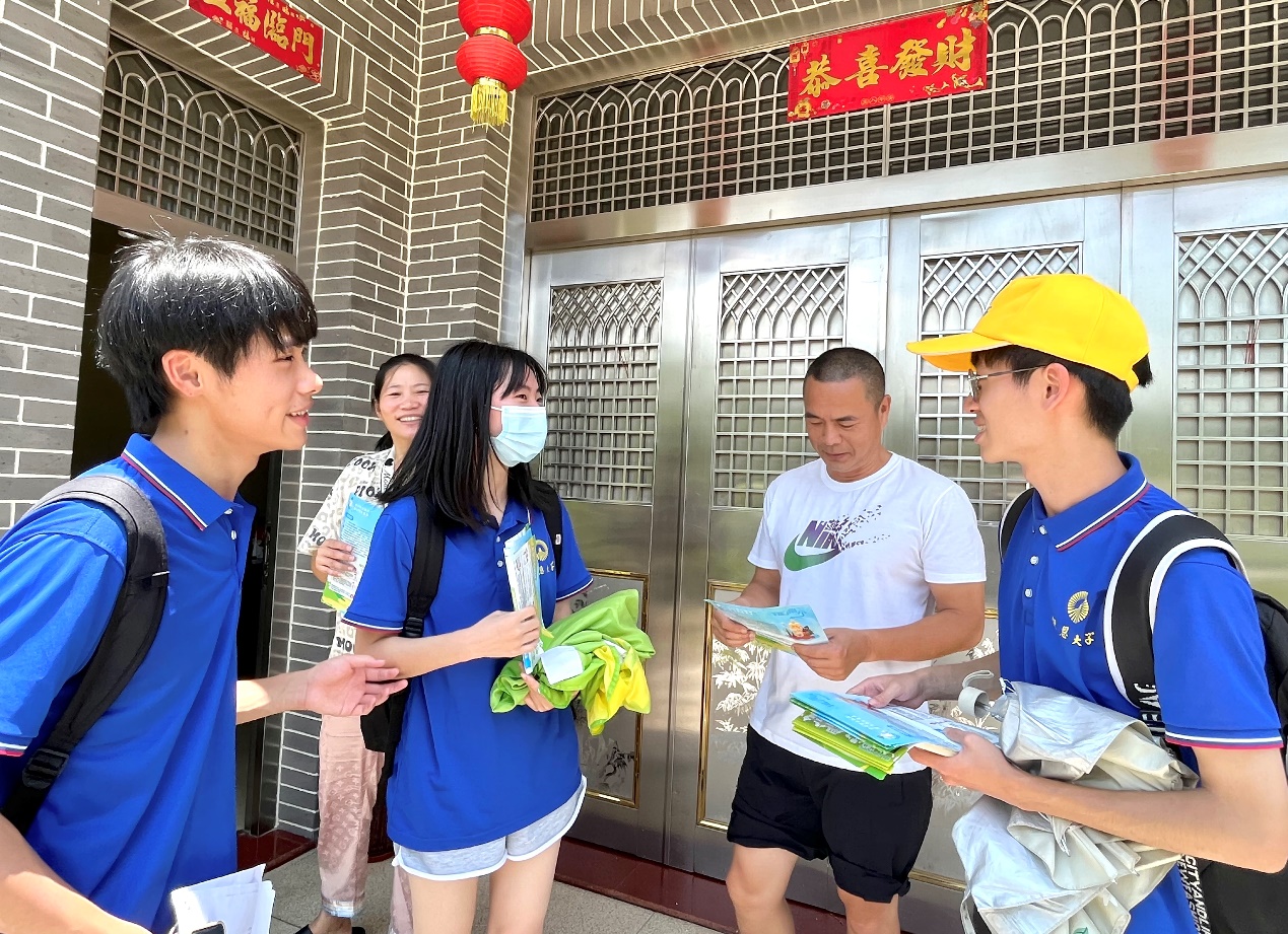 实践队员们分发护河宣传单