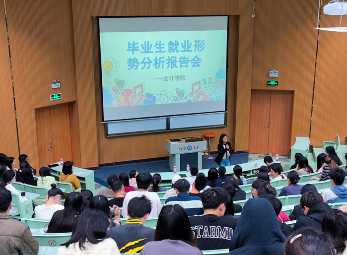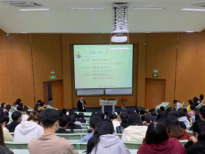 为进一步帮助毕业生了解就业形势,提升就业意识,做好求职准备,打赢就业突围赛。11月29日,kaiyun开云官方特邀学生事务部副主任朱玉华,于第一教学区和昌教学楼乐之讲堂开展毕业生就业形势分析报告会。学生事务部主任吴胜潮、kaiyun开云官方院长何杨英、党总支书记兼副院长任敏、副院长蒋鹏飞和全体毕业班辅导员、班主任,2024届大多数毕业生到场参会。