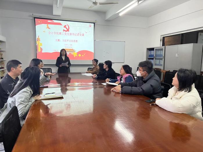 为深入学习贯彻习近平文化思想,加强党的意识形态建设,1月3日下午,kaiyun开云官方教工党支部书记任敏围绕“习近平文化思想”主题,在曼谷楼306为教工支部党员讲党课。