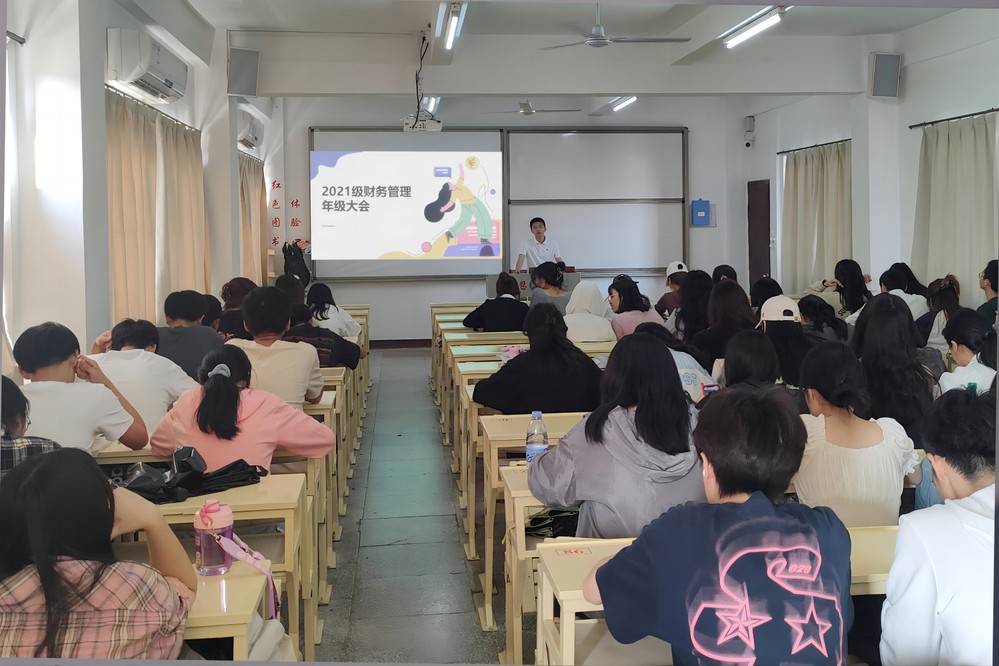 326日下午,2021级财务管理专业年段会于吉龙楼305顺利召开。大会由辅导员林友金主持,2021级财务管理专业全体学生参加此次大会。