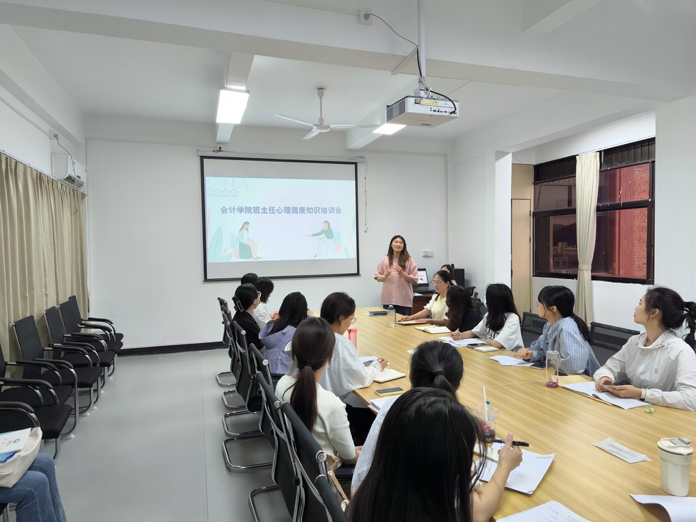 5月8日,我院班主任心理健康知识培训活动在曼谷楼201室成功举行。此次培训由院二级心理辅导站负责人卢传欢担任主讲,旨在提升班主任的心理健康素养,特别是针对抑郁症等心理健康问题的认知和应对能力,以助力班主任更好关注学生的心理健康,为学生的健康成长提供有力支持。