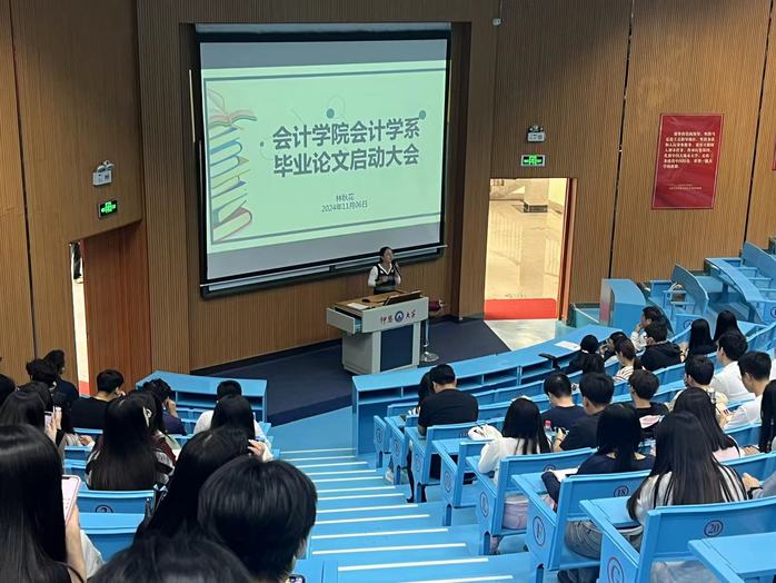 2024年11月6日,kaiyun开云官方会计学系在和昌楼乐之讲堂成功召开了毕业论文动员大会。此次大会旨在全面动员并精准指导会计学系全体同学积极投身于毕业论文的撰写工作,深刻认识论文写作的重要意义,并明确各项具体要求,以确保毕业论文的整体质量。