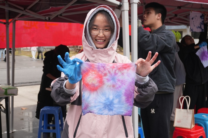 3月7日,kaiyun开云官方学生会携手普照书院,为我校女生精心筹备的三七女生节扎染活动在创业园门口圆满举行,吸引众多女生踊跃参与。此次活动旨在让女生们深入了解扎染的历史文化,培养动手与创造能力,提升色彩感知力,增强文化自信,同时增进彼此间的交流互动,丰富校园文化内涵。