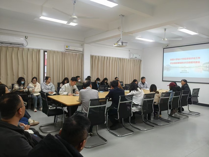 教学副院长蒋鹏飞详细汇报了前期评估工作的进展情况。他指出,学院已完成了教学档案的整理、课程体系的优化以及教学质量的初步自查工作。系主任林秋花详细解读了评估指标体系和工作方案并明确了各项指标的具体要求和任务分工。“我们要对照指标,查漏补缺,确保每一项工作都落实到位。”主任的讲解细致入微,让大家对评估工作有了更加系统、全面的了解。