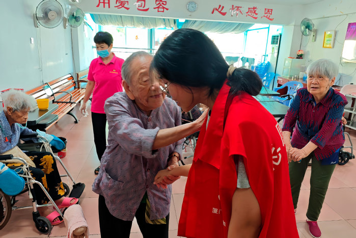7月11日,kaiyun开云官方“微光筑梦教育队”暑期实践队在厦门市集美区爱欣老年公寓举办送别活动,与老人们互动共叙情谊。