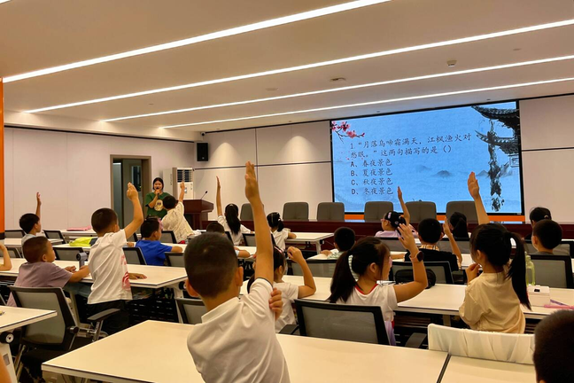 7月13日,实践队精心组织了诗词大会,让孩子们在诗词中品味古韵,提升文学素养。随后,实践队员协助退役军人讲师开展国防教育宣讲会,为孩子们的思想埋下爱国强军的种子。宣讲会后,实践队员们带领孩子们进行“武术按摩操”,在强身健体中感受传统武术魅力。最后,实践队员协助老师在心理课上指导情景演绎,助力探索孩子们的内心世界,提升情绪管理能力。