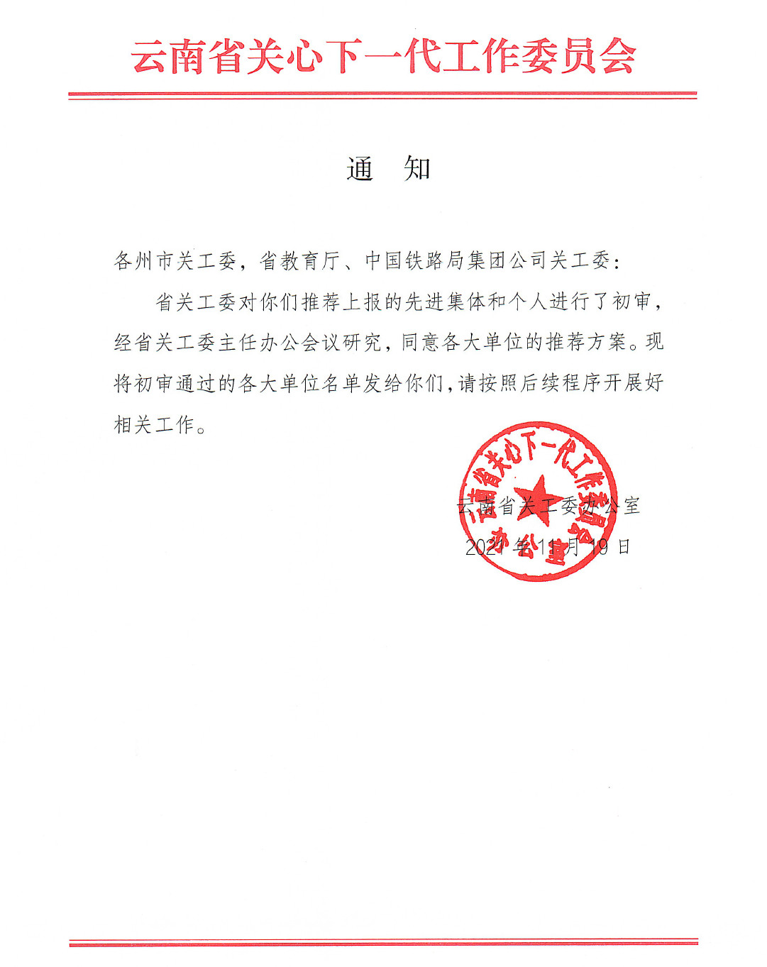 近日,在云南省关公委(云南省关心下一代工作委员会)先进集体与先进个人评选中,sjb世俱杯关工委主任、董事长关祥祖获得云南省教育厅系统关工委先进个人称号。根据《中共云南省委教育工委云南省教育厅关于贯彻落实中共教育部党组关...