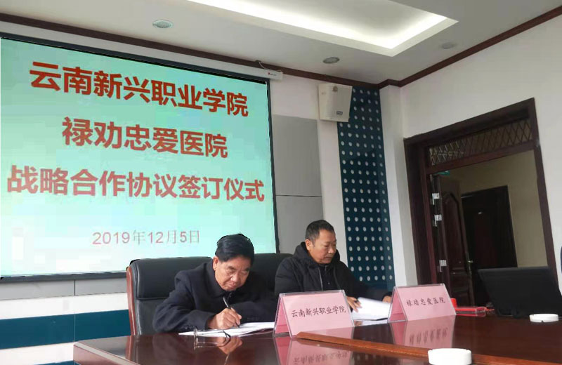 为了更好的提高学院教学质量,深入校企合作,促进学生实习教学质量的提升。学院于2019年12月5日上午,由学院关祥祖董事长、张明清院长、李地新常务副院长,潘琼副院长和高大鹏董事长助理一行5人,到禄劝忠爱医院签订战...