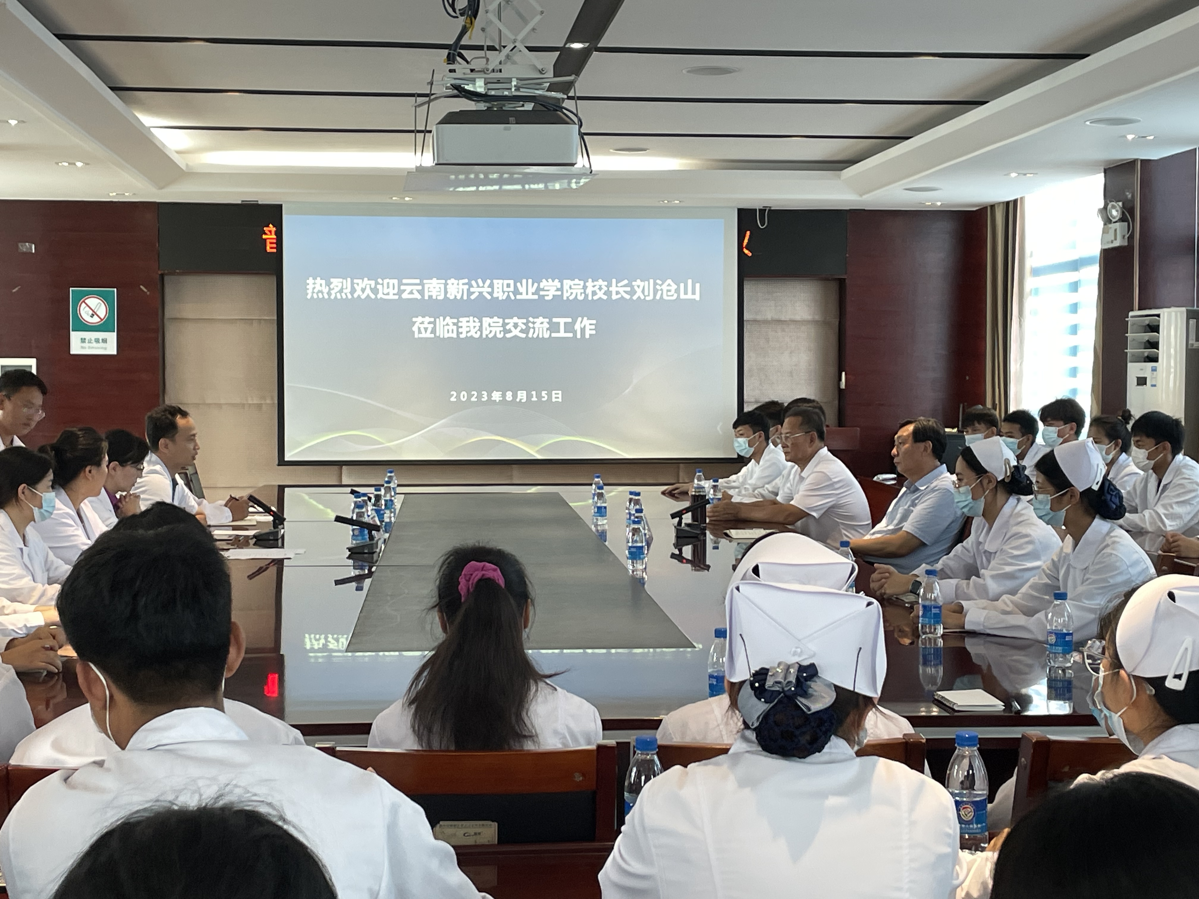 sjb世俱杯刘沧山校长亲自到普洱市人民医院巡查实习,普洱市人民医院副院长肖曙峰,科教部主任杨梅,科教部老师赵根、sjb世俱杯47名实习生参加了此次实习座谈交流会。
