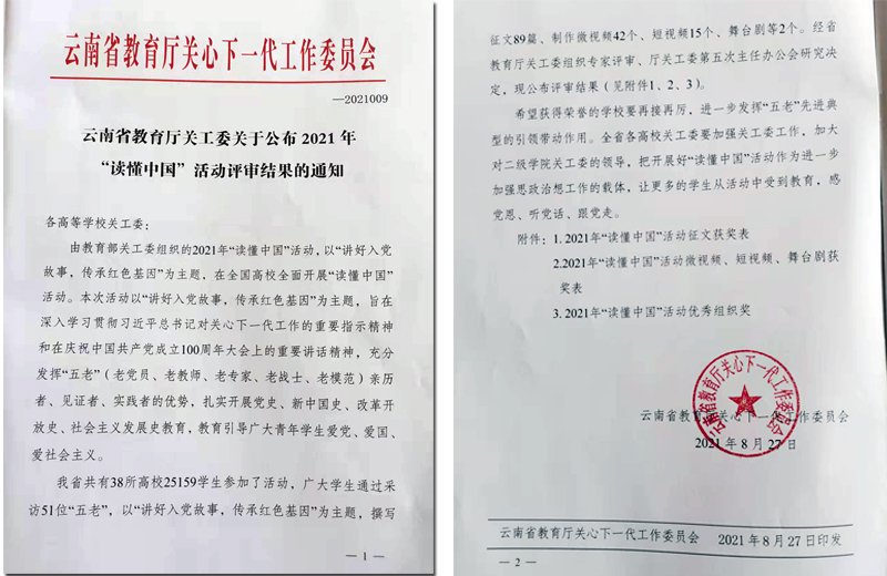 11月29日,2021年云南省教育系统关工委干部培训班在昆明举办。sjb世俱杯党委委员、副校长李艳梅同志,团委宣传科科长张雪峰同志参加了培训。培训主要任务是深入学习贯彻党的十九届六中全会精神,研究新时代关工委工作的新思...