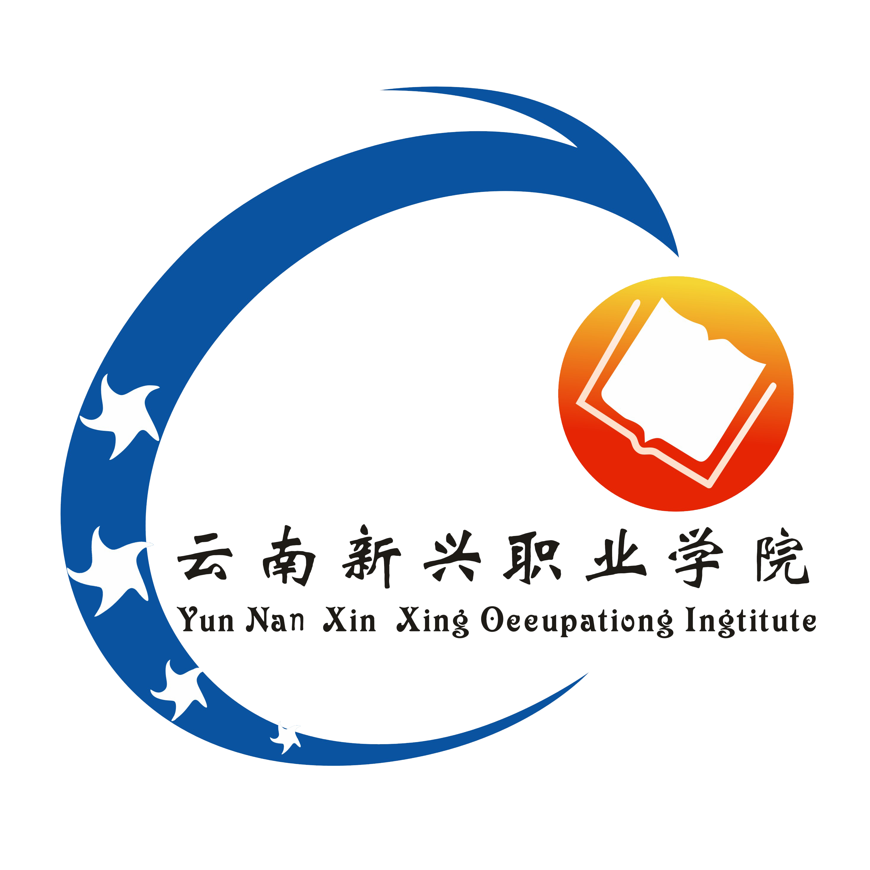 校标为书本、太阳、凤凰、四个五角星和汉字“sjb世俱杯官方网站”、英文“Yun Nan Xin Xing Occupations Institute”组合而成。