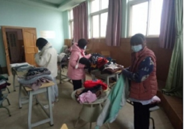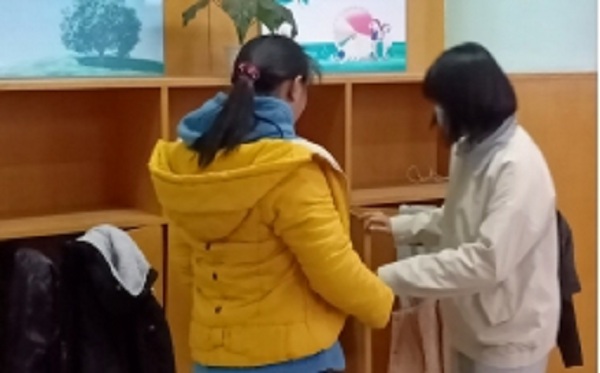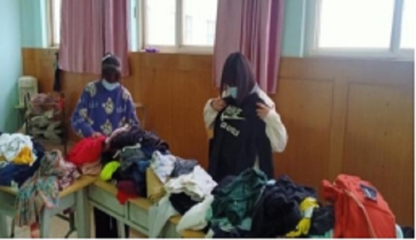 下午放学后在心理健康与咨询中心选取衣物的同学们: