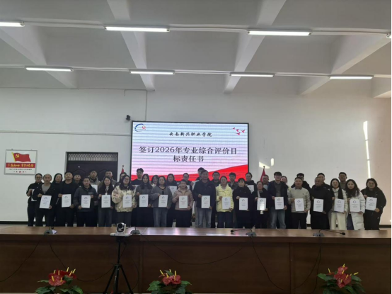 签约仪式上,各相关职能部门负责人、专业综合评价专班组组长、二级学院负责人、各专业负责人郑重签署目标责任书。责任书明确了2026年度专业在课程建设、师资队伍、实训条件、就业质量、社会服务等多维度的评价指标与考核要求,将专业发展目标细化为可量化、可考核的具体任务,为专业建设提供了清晰的行动指南。