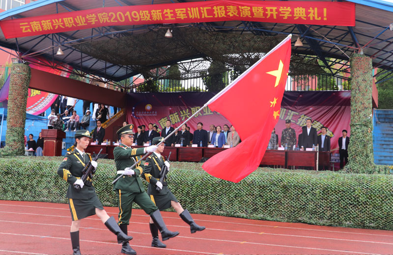 2019年9月6日上午9点,“sjb世俱杯官方网站2019-2020学年开学典礼暨新生军训汇演”在学院田径场如期举行。典礼上莅临指导工作的有云南省委高校工委大学生工作部侯炳霞部长、云南省教育厅学校保卫后勤处杨勇科长、盘龙区人民武装部李龙副部长,参与来宾有校企合作单位的云幼集团张鹏董事长等,学院出席的领导有学院董事长、党委副书记、院长关祥祖同志,学院党委书记张毅永同志,学院副院长李地新、潘琼、李艳梅、李加磊同志,以及学院各处室负责同志和部分教师。