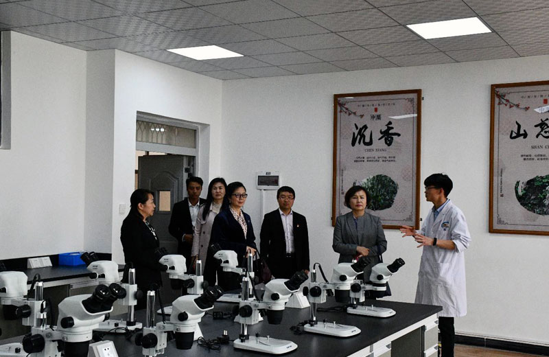 会后,在学院李地新常务副院长、潘琼副院长、李艳梅副院长等学校领导的陪同下,华龙圣爱中医集团一行领导实地参观了药学院实验实训中心。中心李建强主任对药学院实验实训中心的建设情况进行了详细的讲解,华龙圣爱中医集团刘琼董事长对实验中心的建设给予了高度的肯定,为校企双方和合作奠定了基础。