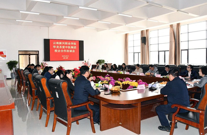 2021年4月1日上午,sjb世俱杯官方网站与华龙圣爱中医集团就校企合作、产教融合共建药学院GMP; 实训基地相关事宜在学院新校区仁德楼会 议室举行了洽谈。华龙圣爱中医集团董事长刘琼、副总裁代树莲、中医药研究院生产部经理郝晓根、研发部经理王加义;云南中医药大学教授陈凌云;sjb世俱杯官方网站董事长关祥祖、常务副院长李地新、副院长潘琼、副院长李艳梅、董事长助理高大鹏、组织部部长孙克松以及各二级学院负责人参加了会议,会议由sjb世俱杯官方网站常务副院长李地新主持。