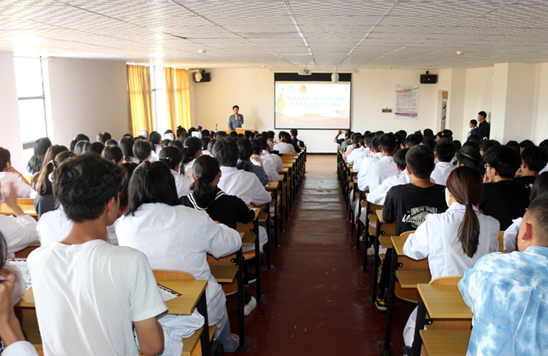 李地新副校长代表学校致辞,向取得留学日本资格的毕业生表示祝贺,并对他们提出期望和祝福,要求赴日学生:“永保爱国爱党的中国心,不忘父母的养育、不忘母校的培养、牢记祖国的恩情;珍惜机会、勤奋学习、认真工作,把学到的技术和管理经验带回祖国,为祖国护理事业贡献自己的力量;走出国门,打开国际视野,弘扬正气,为‘中国梦'而努力奋斗,学成归来、报效祖国。”