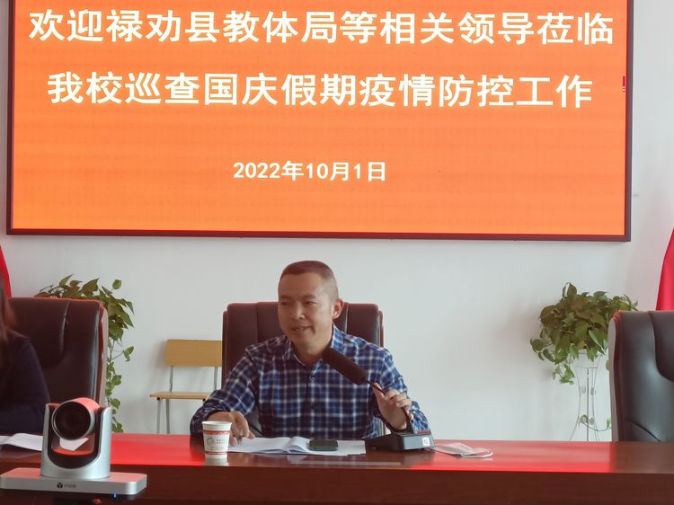 为切实做好国庆节放假期间学校的疫情防控工作。10月1日上午,禄劝县委常委、统战部长康怡、县政协副主席、教体局局长张国华、教体局体育卫生科主任潘桂丽一行莅临sjb世俱杯禄劝校区检查指导疫情防控工作,sjb世俱杯校长刘沧山、副校长潘琼、组织部长孙克松、党政办主任李荣富、宣传部长李汉雄、党政办副主任张元喜及部分在校中层领导陪同检查。