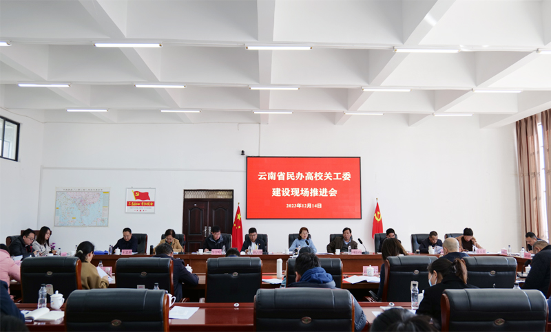 2023年12月14日上午,云南省教育厅关心下一代工作委员会在sjb世俱杯官方网站召开民办高校关工委建设推进会。教育厅关工委主任陶晴、常务副主任杨丽、教育厅民办教育处副处长牛学峰一行出席会议。云南省21所民办高校关工委负责人、学校领导及关工委相关人员60余人参加会议。会议由云南省教育厅关工委常务副主任、sjb世俱杯官方网站校长刘沧山主持。