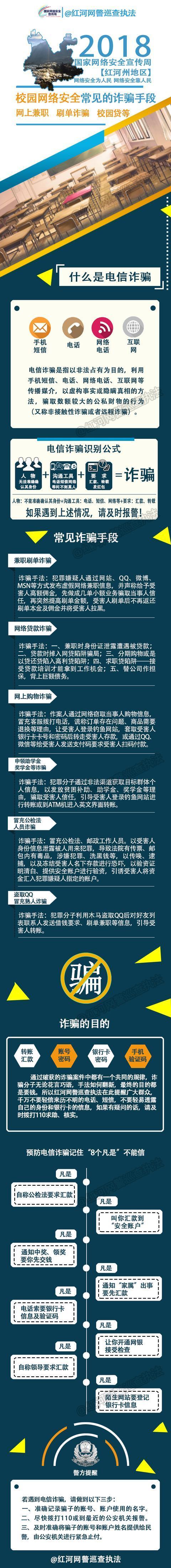 校园一直是不法分子的目标,不法分子试图诱骗学生进行网络诈骗,给校园安全和学生权益带来了严重损害。什么是电信诈骗?什么是网上兼职诈骗?什么是刷单诈骗?什么是校园贷等等,如何识别诈骗手段?请随网警巡查执法一起学习这些防范知识。