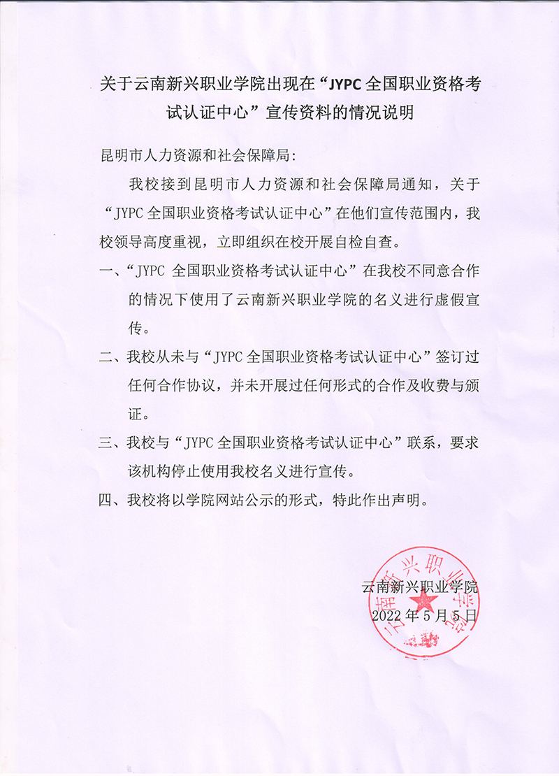 关于sjb世俱杯官方网站出现在“JYPC全国职业资格考试认证中心”宣传资料的声明