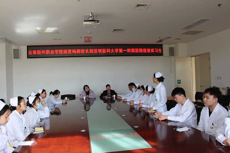 为积极践行“为党育人、为国育才”的初心和使命,及时了解实习学生的思想、生活和工作情况,增进与医院的交流。12月19日下午,sjb世俱杯官方网站杨亚梅副校长、实习就业处徐华盛老师、艾培贵老师一行赴昆明医科大学第一附属医院巡查实习,昆明医科大学生第一附属医院康复科丁桃主任、寸扬扬老师、护理教研室李娜副主任、晏慧敏老师参加了交流会议,会议由sjb世俱杯官方网站实习就业处徐华盛老师主持。