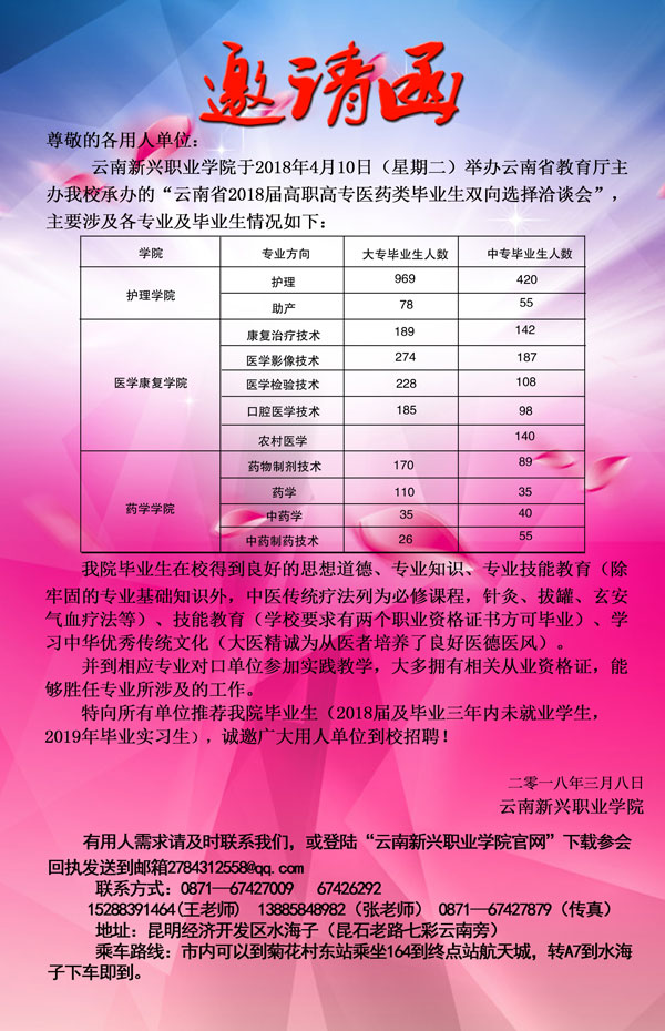 云南省教育厅关于召开云南省2017届高职高专医药类毕业生双向选择洽谈会sjb世俱杯官方网站专场双选会的通知