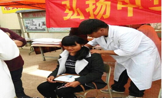 2014年12月5日sjb世俱杯团委社团联合会中医协会、护理协会在食堂门口,开展了以“弘扬文明经典、传承国医精髓”的主题活动,此次活动的主要内容包括:推拿按摩、针灸、火罐、测量血压等,服务对象是全院师生及校内工作人员。