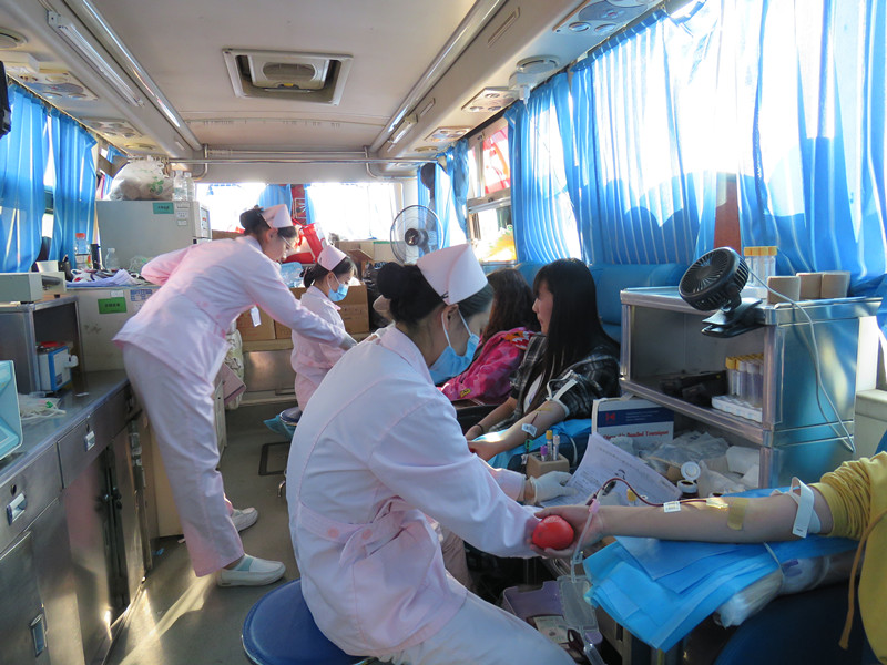 在活动现场,相关工作人员各司其职,有序的开展现场工作,还为献血志愿者们讲解献血知识,解决献血者困惑。本次活动的采血人员全是专业医师,所用器具全是一次性的卫生用品,同学们都没有什么顾忌。献血者们都积极配合血液中心的医生和护士的工作,有秩序的排着队,做好相关检查等待抽血。当时现场的献血者在被询问为什么要参加无偿献血活动的时候他们很平淡的回答道:“没有什么特别的目的,我身边的朋友也都在献血,既对自己的身体有好处,又能挽救他人的生命,何乐而不为呢?同时我也希望我们的无私奉献会使更多患者得到救助,让他们能够继续快乐的活下去,这是一份责任,也是一份荣耀,我觉得献血让我感到很自豪,很骄傲,即使这只是微不足道的。