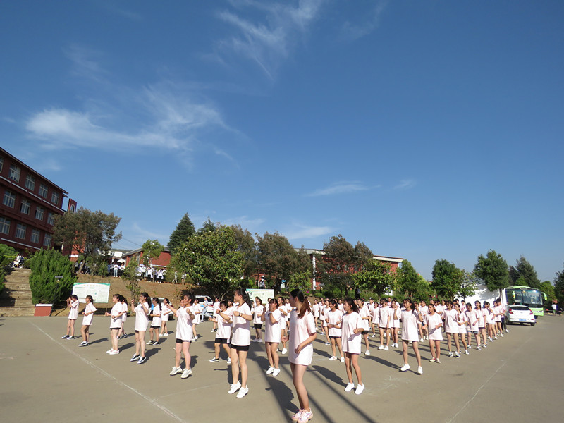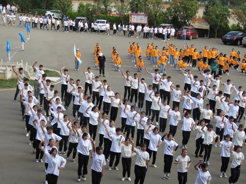 主持人宣布比赛赛制及评分标准,介绍到场各位老师及嘉宾。比赛正式拉开帷幕。穿着统一的着装有序的进场,踏着优美的旋律,翩翩起舞,激情四射。自信的脸庞洋溢着青春的笑容,活泼的身姿散发出美的韵律,队列变化整齐有序,舞姿或优雅或从容,或热情或奔放,彰显了新兴学子良好的精神风貌。欢快的节奏,催人奋进,跳跃的音符,荡人心弦,赢得观众和评委的阵阵掌声,整个校园洋溢着欢乐热烈的气氛。