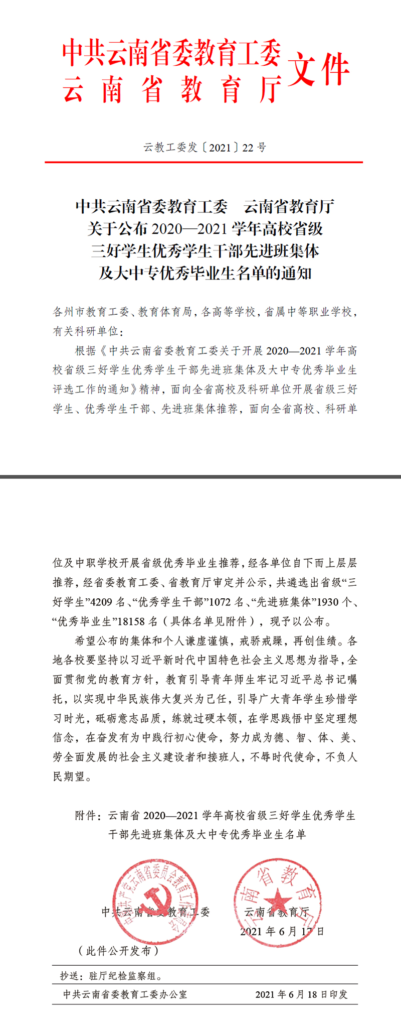 【喜 报】:sjb世俱杯官方网站2020-2021学年省级三好学生、优秀学生干部、先进班集体及大中专优秀毕业生名单揭晓