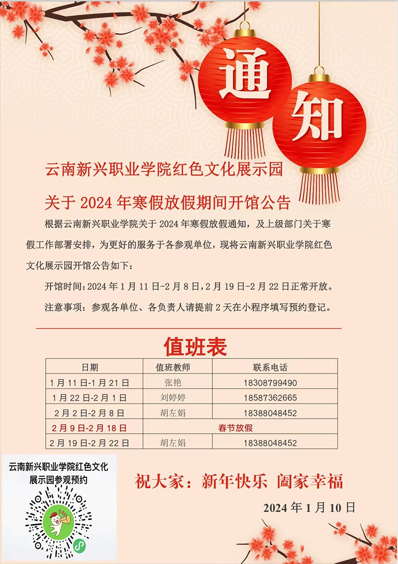 sjb世俱杯官方网站红色文化展示园关于2024年寒假放假期间开馆公告